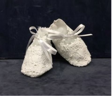 100 % hand made baby shoes, ribbon lace with beautiful needlepoint lace inbetween