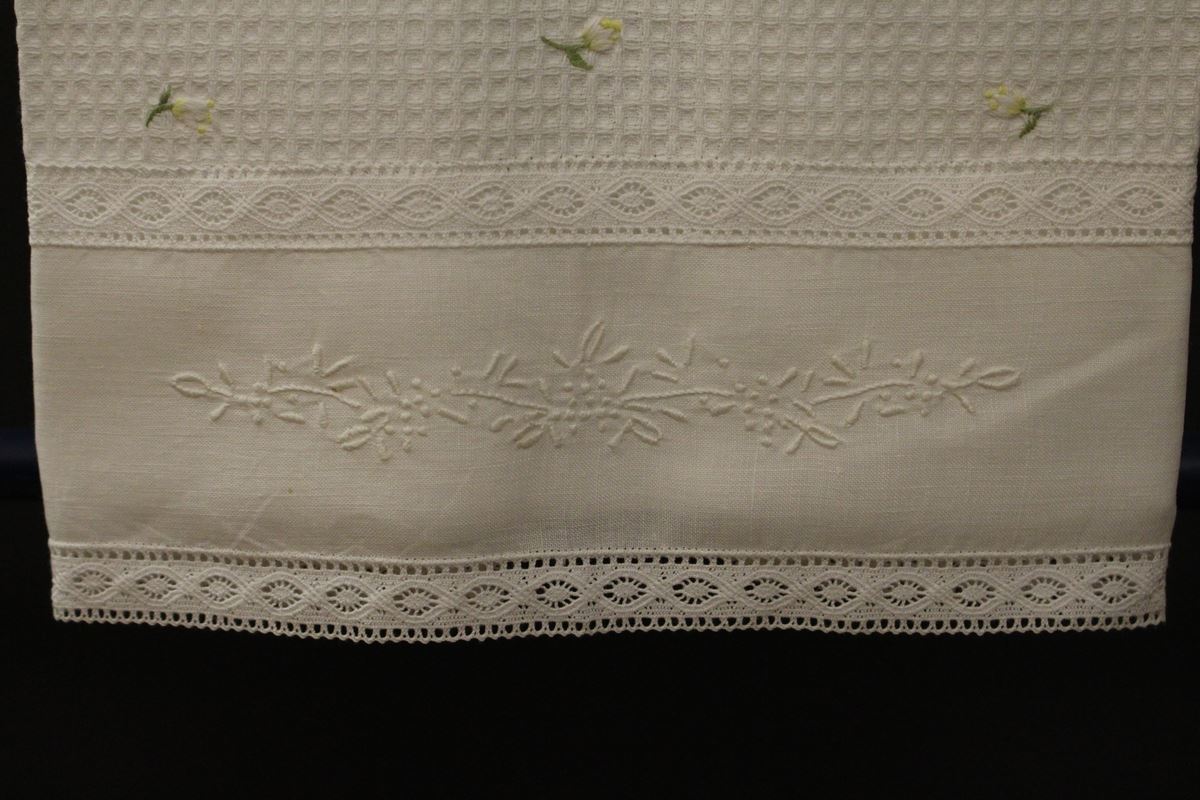 Met de hand geborduurde keukenhanddoek.