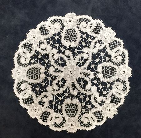 Het is een zeer delicate kantsoort vervaardigd met klosjes en linnen of katoen draad.