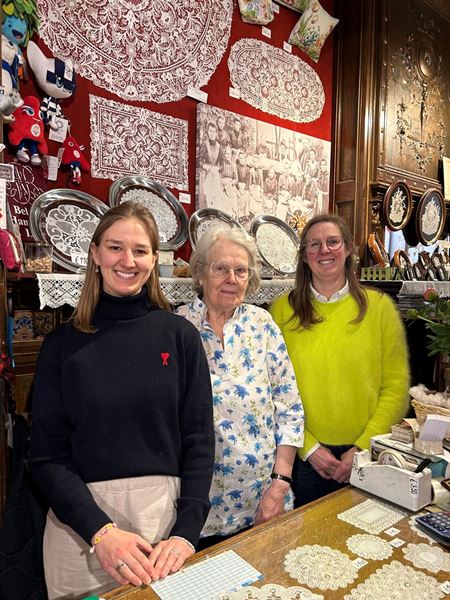 In de zomer van 2023 trad een nieuwe generatie toe tot de zaak, met de komst van Mieke’s dochter, Laura. Deze toevoeging markeerde een nieuw hoofdstuk in ons verhaal, waarin we vastbesloten zijn om de traditie van kantwerk voort te zetten alsook te moderniseren.